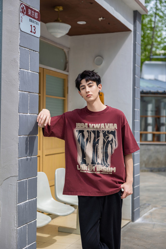 夏季復(fù)古寬松半袖 紅色